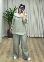 دور سینه : 100 دور باسن : 100 دور بازو : 36 قد آستین از یقه : 69 قد : 79