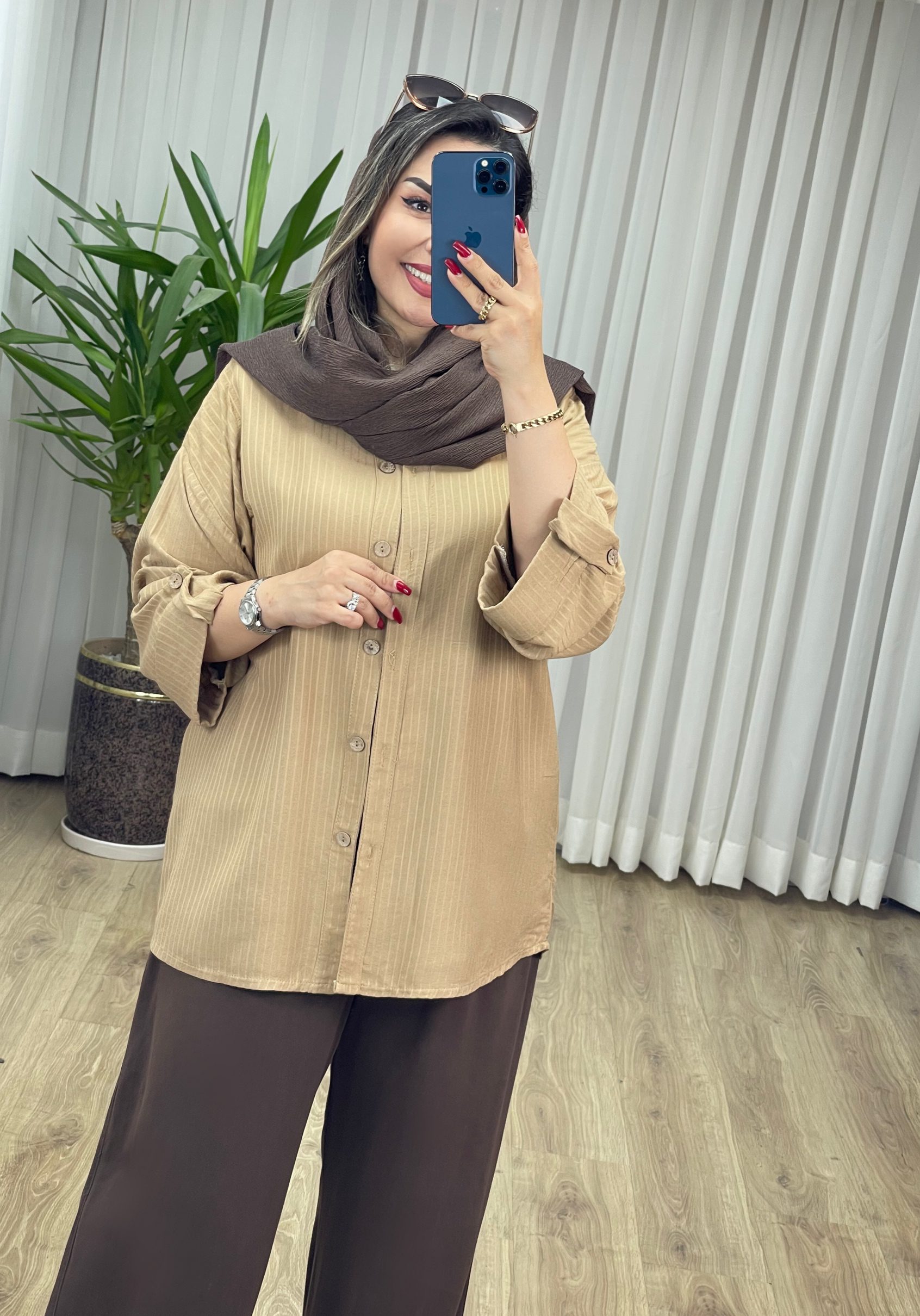 دور سینه : 100 دور باسن : 112 دور بازو : 38 قد آستین از یقه : 67 قد : 78