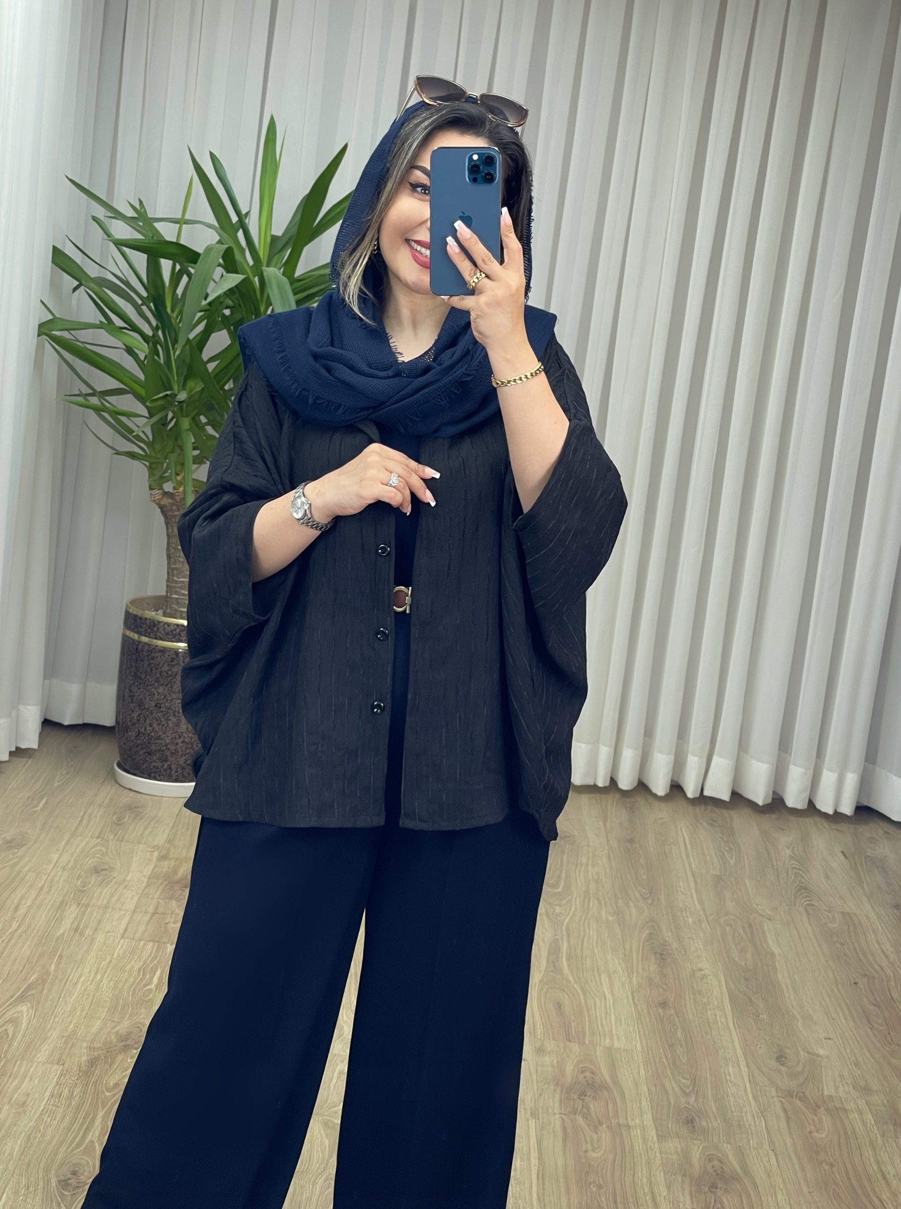 دور سینه : 100 دور باسن : 100 دور بازو : 36 قد آستین از یقه : 69 قد : 79