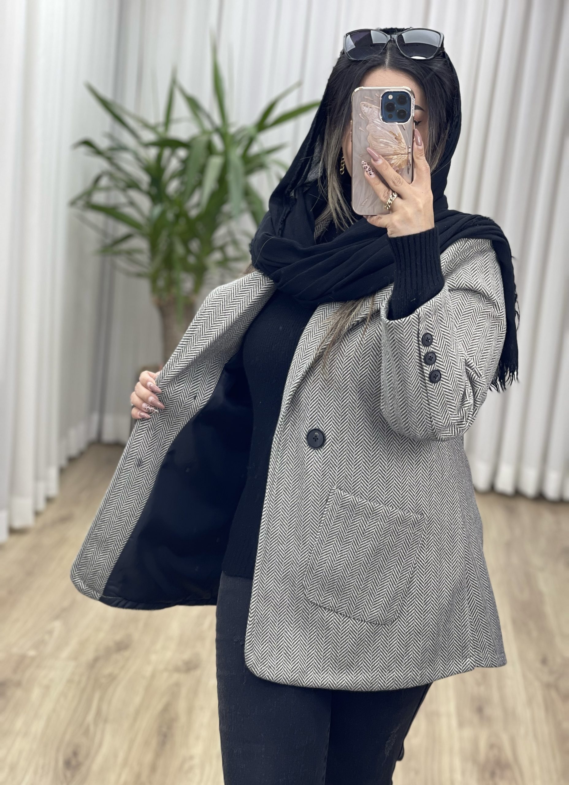 دور سینه:104 دور بازو: 37 قد آستین از یقه : 63 قد: 44