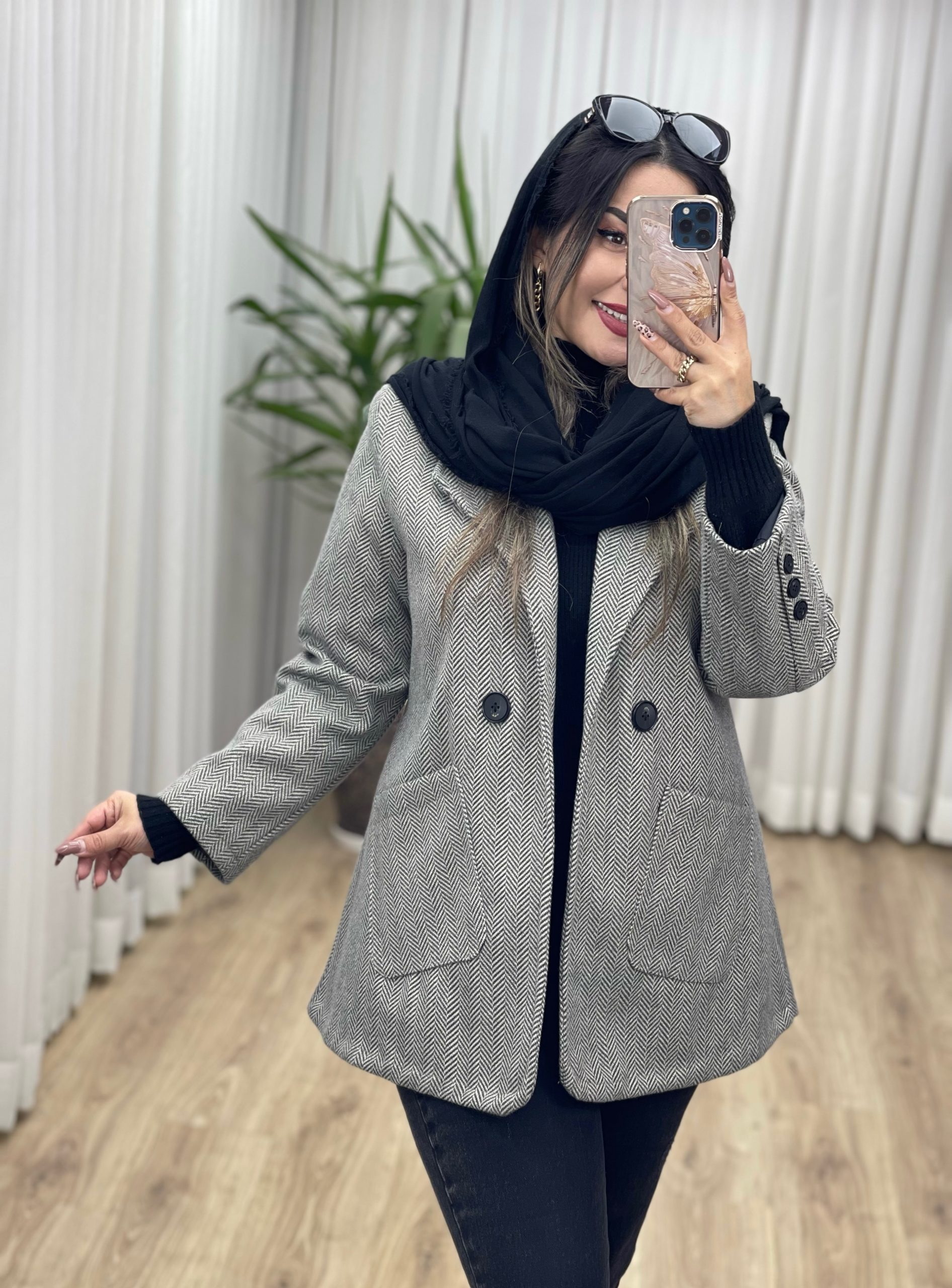 دورسینه: 100 دور باسن: 114 دور بازو: 36 قد آستین از یقه : 68 قد : 75
