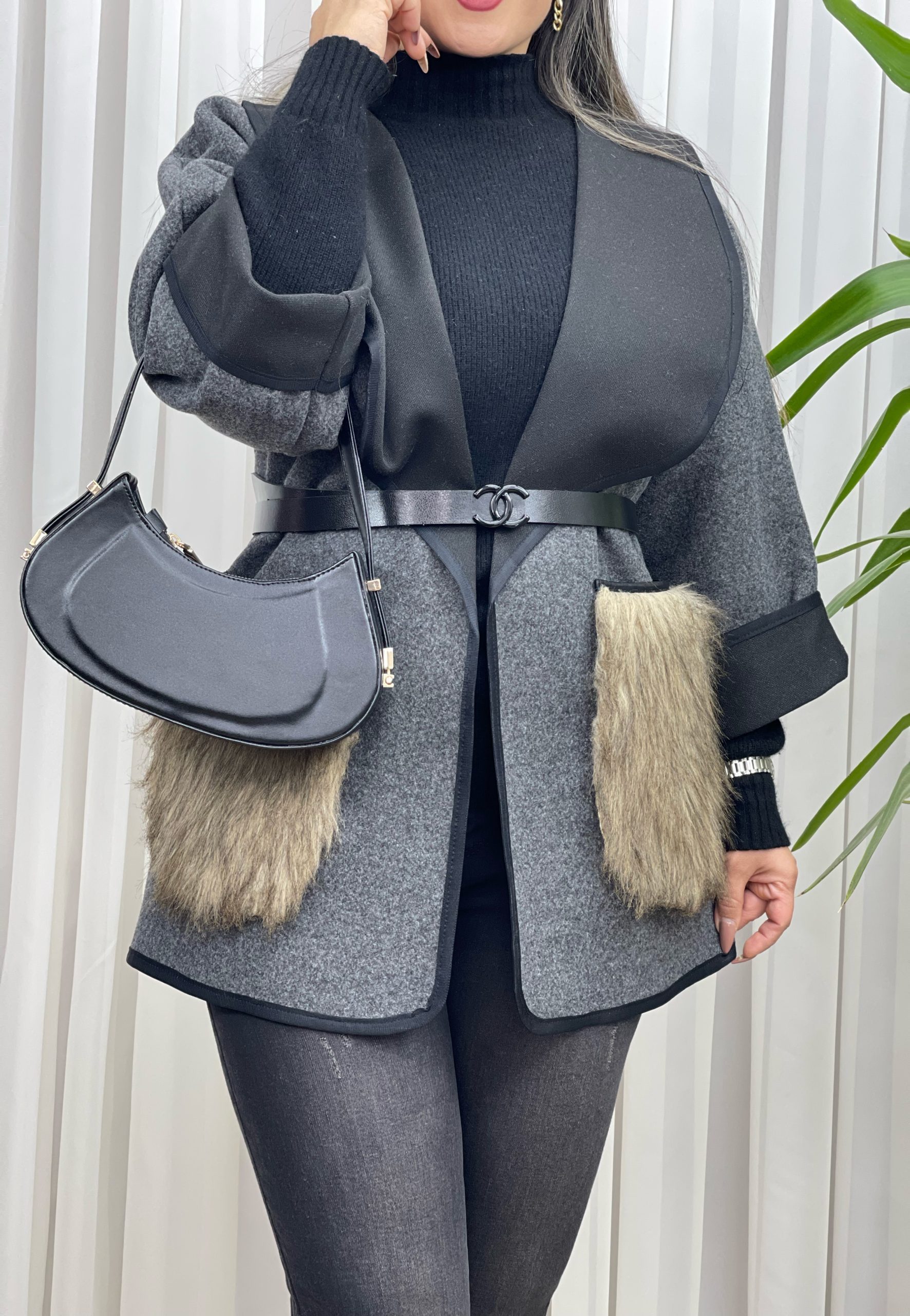 دور سینه : 110 دور باسن : 114 دور بازو : 42 قد آستین از سر شانه در حالت باز : 57 قد : 77